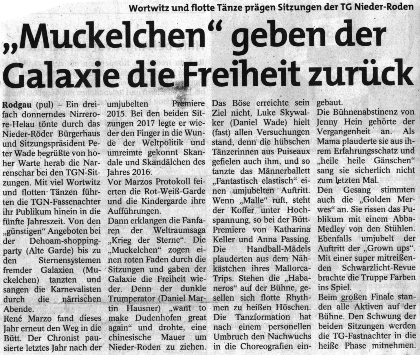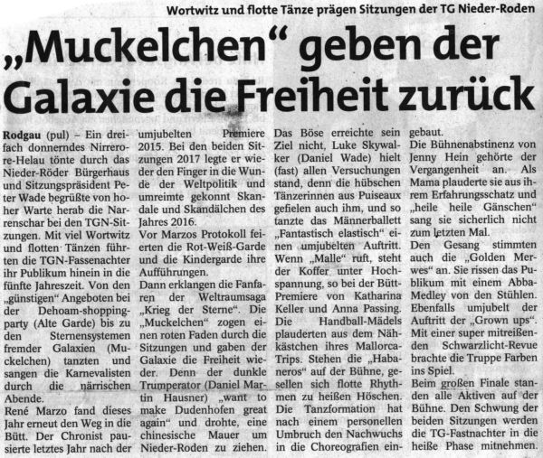 "Muckelchen" geben der Galaxie die Freiheit zurück (STADTPOST, 02.02.2017)