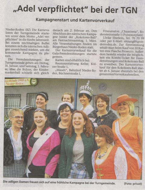 "Adel verpflichtet" bei der TGN (RODGAU-ZEITUNG, 15.11.2014)